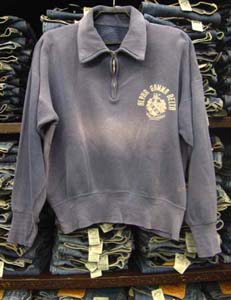 特徴:カッコよく色落ちした501XXを際立たせ相性が良い人気の100%COTTTON MADE IN U.S.A.CHAMIONのランナーズタグスウエットシャツの紺ベースに白のフロッキーカレッジプリントで1990年代前半の第一次ヴィンテージブームの頃から常に人気のあるアイテムです。
