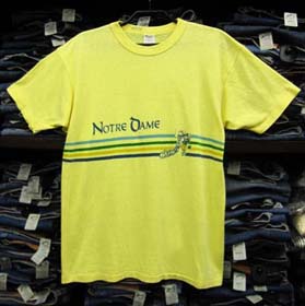 特徴:ライト素材のイエローベースにアメリカノートルダム大学のマスコットキャラクターファイティング・アイリッシュのプリントのMADE IN U.S.A.CHAMPIONプリントタグTシャツです。
