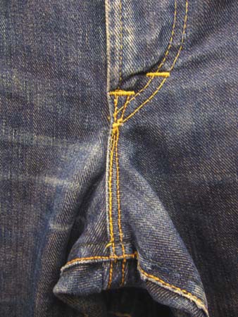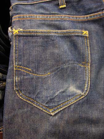 ![]() ヒップポケットは白の当て布付き |