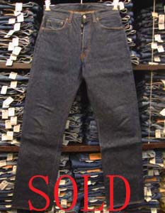 特徴:人気の真っ紺でウエストは穿きやすい良いサイズでトップボタン裏は点々点でフロントボタン裏のリベットがアルミの前の時代の銅でスモールボタンが足長Rの前の刻印が深いタイプの皮パッチの時代の501XXデニムパンツでヒップポケットは人気のあるオレンジxイエローの2色使いで赤タブは均等Vです。