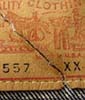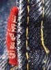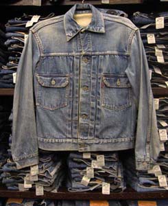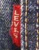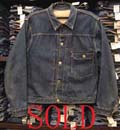 特徴:1949年から50年代初期にかけてのLOTナンバーとサイズ表示も赤文字(この後101−Jとサイズ表示の数字REGULARの文字が黄色になる)で囲みステッチが黄色糸のサイズ表示入り赤タグ初期型のアタリの出る前の真っ紺のデニムJKTです。胸の黒タブは丸RもMRも付く前の時代の物です。