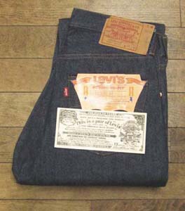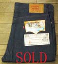 特徴:濃い色をした黒タグサイドのサイズ表示の入る前のタイプで人気のあるボタンフライのデニムパンツで両ミミ付きです。
