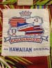 特徴:ハワイでデザインされてハワイでお土産用に販売されていたチリメン地でハワイ初代国王カメハメハ大王1世やハワイの守り神ティキやハワイ王朝時代に王族を象徴した鳥の羽飾りがついたKhili(カヒリ)などが大きく描かれたMADE IN HAWAIIハワイアンシャツです。
