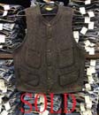 特徴:ブラウンダック地の中では薄目でフロントにはハンティングする時に使う弾を入れるポケットがお洒落な感じにデザインされ後ろにはウエスト部分がサイズ調整できるようバックルバックが付いたベストです。