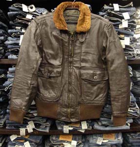 特徴:こげ茶よりも前の時代の明るい茶色のボアのTHE MARTIN LANE社製のU.S.NAVYミリタリーG-1レザーJKTで前たてにUSNのパンチング文字が入っています。