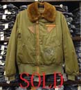 特徴:オリーブドラブ色のコットンにインナーがアルパカでフロントには酸素マスクのホースがしっかりと身体に付くようクリップで留めて置くための三角のレザーとネームバーがつき脇の下には飛行機内での通信に使用するコード留めが付き右腕には戦域のCBI(Chinaチャイナ・Burmaビルマ:現ミャンマー・Indiaインド)の布に刺繍のワッペンで左腕にはA−2と同じARMY AIR FORCEマークが薄っすらと残っていているA−2の代わりに1944年から飛行服として採用が始まったB−15AのMETRO SPORTS WEAR社製です。