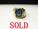 特徴:10Kゴールドベースに青の石のフリーメイソンリングでフリーメイソンのシンボルマークのコンパスと定規は貼り付けタイプではなく石にはめ込んだタイプです。透けた青に見えますが実際に指にはめると濃い青になります。