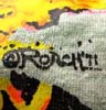 特徴:緑しもふりベースにアイロンプリントをこの時代にデザインしていたROACHのコピーライト入りのYAMAHAのバイクDT1にクレージーに乗っているORIENTAL呪術にかかった男の人のお洒落な配色のTシャツです。
